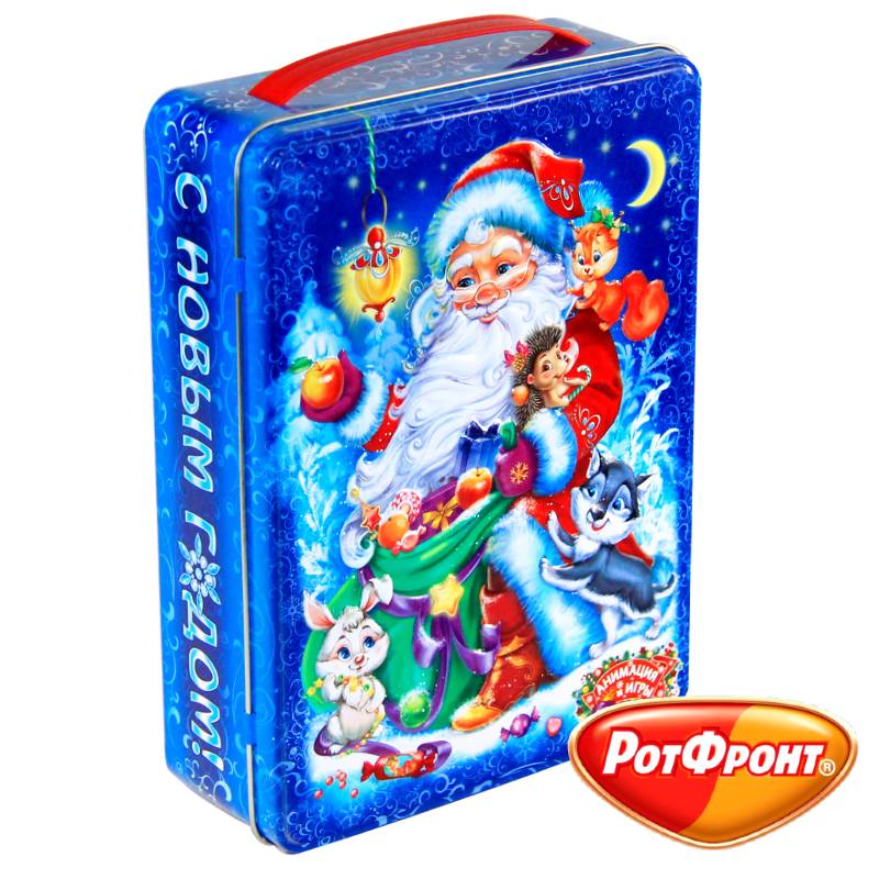 Сладкий подарок на Новый Год в жестяной упаковке весом 800 грамм