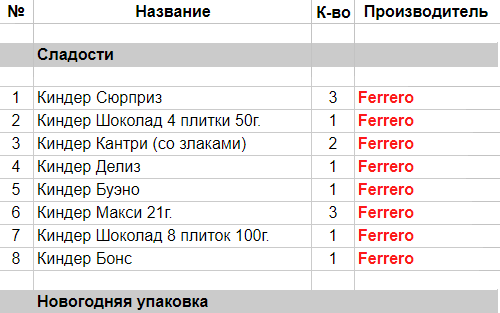 Опубликовано в Составы подарков